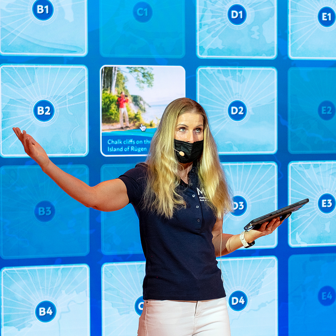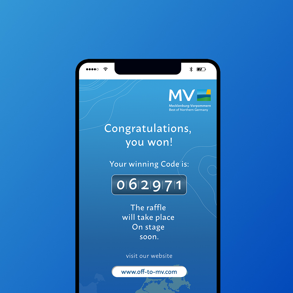 Ergänzend sorgten interaktive Spiele für eine hohe Beteiligung der Besucher:innen: Beim MV-Quiz auf einer speziellen Landingpage konnten Teilnehmende Gewinncodes für Verlosungen erspielen, während das Live-Memory-Spiel auf der Bühne für direkte Gewinne und zusätzliche Spannung sorgte. Durch diese gezielten Interaktionsmomente steigerten wir nicht nur die Verweildauer, sondern machten Mecklenburg-Vorpommern erlebbar.